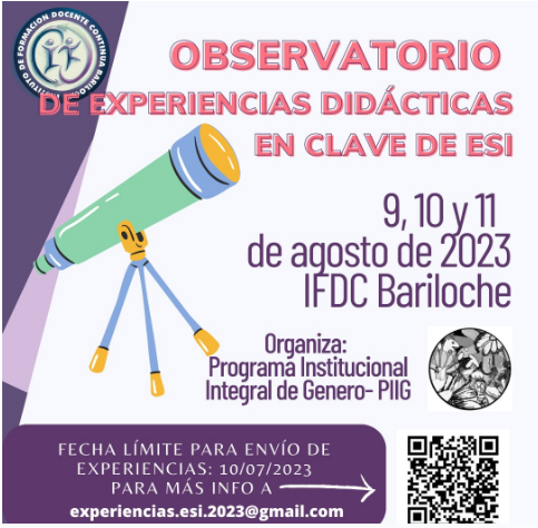 Esta jornada, organizadas por el Programa Institucional de Perspectiva de Género (PIG) del IFDC Bariloche, buscan dar continuidad a la edición 2023 y ofrecer un espacio de encuentro, reflexión e intercambio en torno a la Educación Sexual Integral. Está dirigida a docentes de todos los niveles, estudiantes de profesorados y personas interesadas en compartir experiencias pedagógicas sobre ESI desarrolladas en distintos contextos.